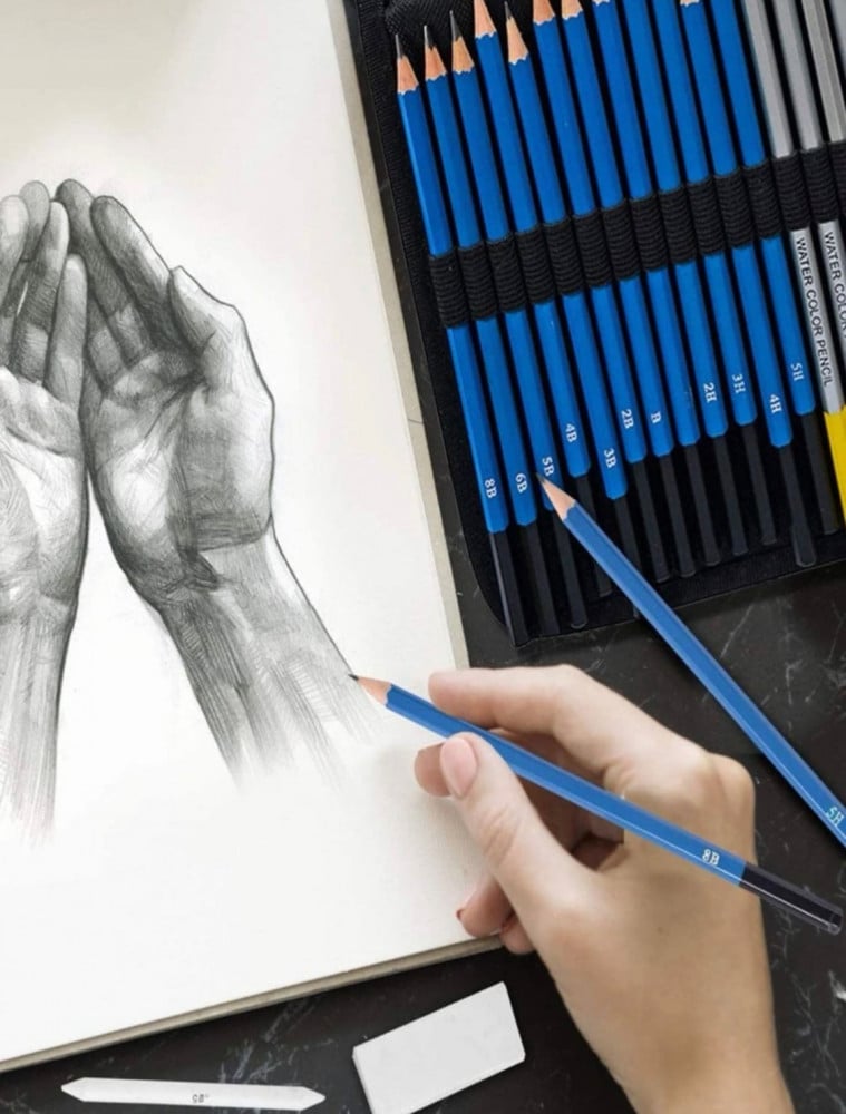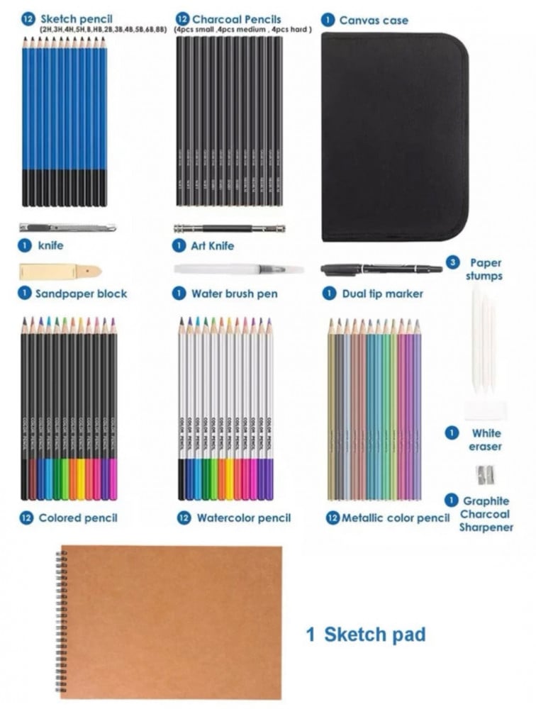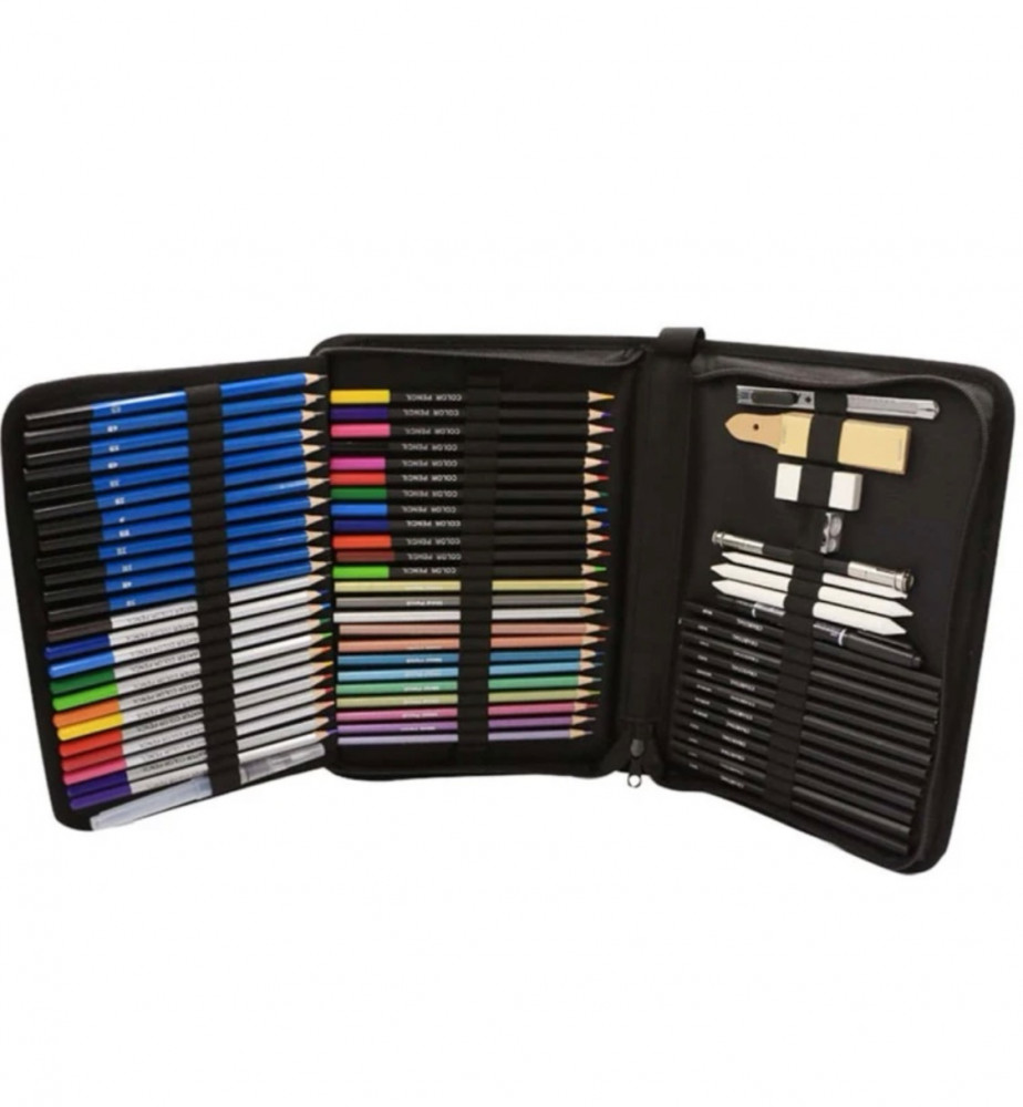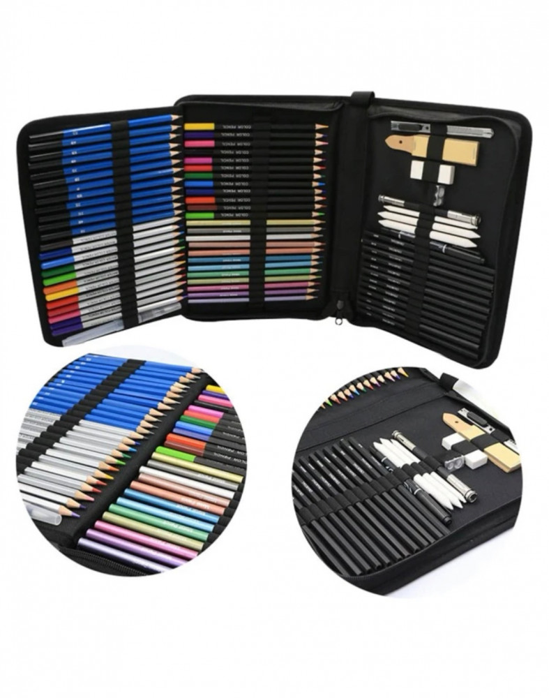 - يتألف الطقم من مجموعة متنوعة من الألوان الخشبية وأدوات التظليل المصممة خصيصاً لتعزيز الإبداع الفني.